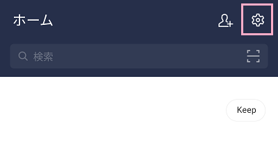 LINEを起動したら、ホームタブから画面右上にある歯車ボタンをタップしましょう。