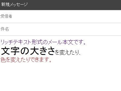 こちらがリッチテキスト形式(HTML形式)のメールです。文字の大きさを変えたり文字に色・背景を付けるといった装飾が可能であり、また添付した画像をメール本文に表示させることも可能です。
