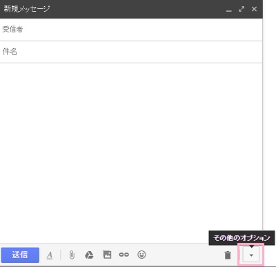 メールの作成画面の右下にある下矢印のボタンをクリックしましょう。