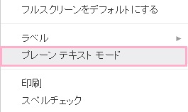 表示されたオプションメニューの項目にある「プレーンテキストモード」をクリックすれば、テキスト形式がプレーンテキスト形式に変更されます。
