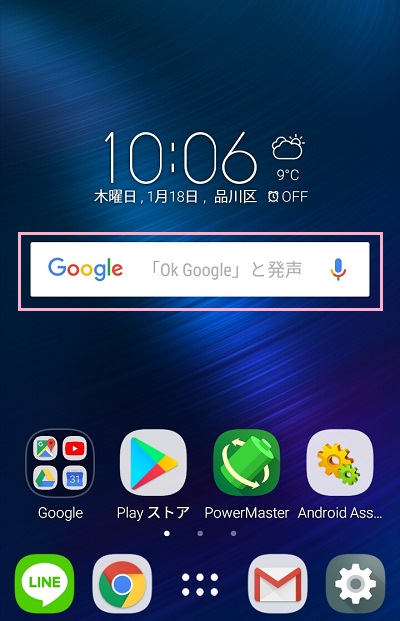 Androidスマホのホーム画面には、必ずと言っていいほどgoogleの検索バーがあります。