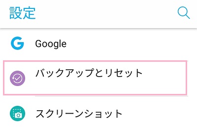 設定メニューの「バックアップとリセット」をタップしましょう。