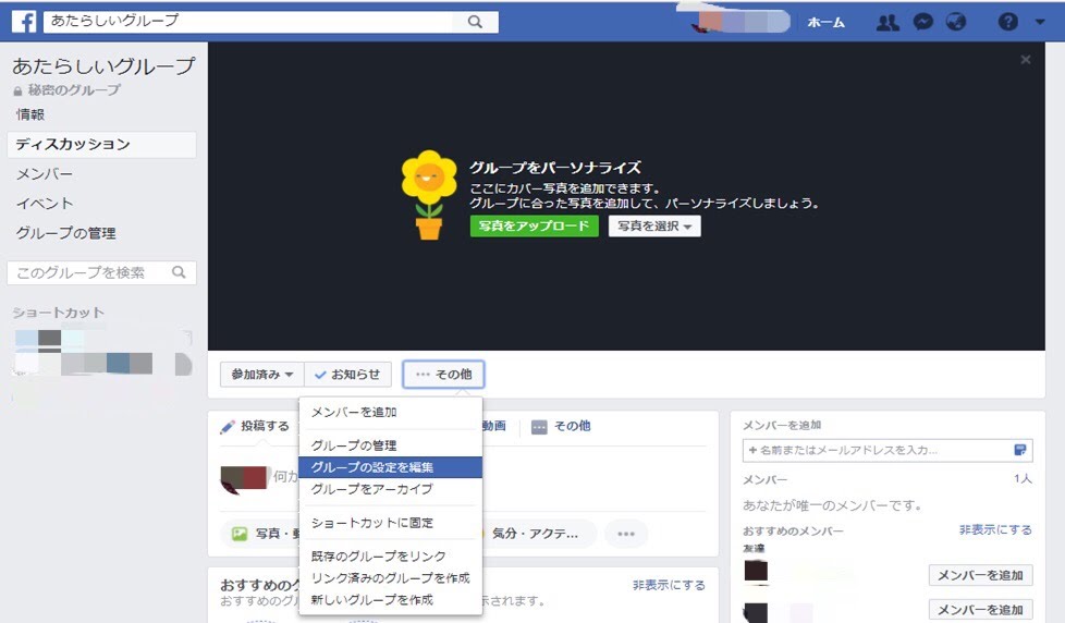 ここではFacebookグループ内でできる設定はどのようなものがあるかお伝えします。