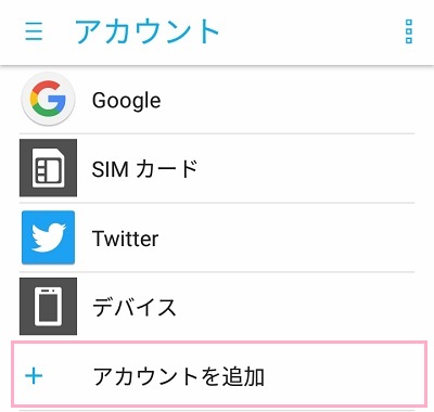 それでは、新しくGoogleアカウントを追加してみましょう。まずは設定メニューの「アカウント」をタップします。