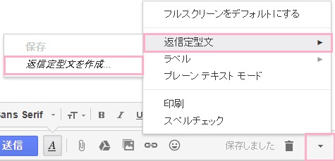 メニューの中に「返信定型文」の項目が追加されています。「返信定型文を作成」をクリックしましょう。
