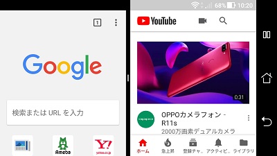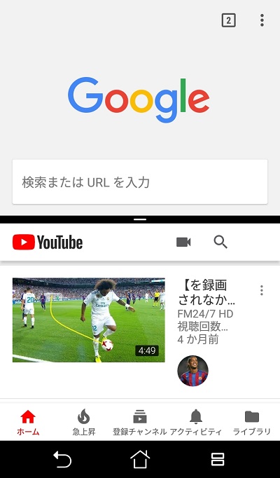 例えばブラウザで調べ物をしたいけど音楽も聴きたい…といった際に、マルチウィンドウ機能を使うことで画面上部はブラウザ・画面下部はYoutubeにすることで、ブラウザで調べ物をしながらYoutubeで動画を再生することが可能です。