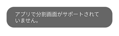 マルチウィンドウ非対応のアプリを起動しようとしても、「アプリで分割画面がサポートされていません」とメッセージが表示され、全画面で表示されてしまうので注意しましょう。