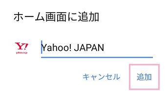「ホーム画面に追加」ウィンドウが表示されるので、サイト名を入力したら「追加」ボタンをタップしましょう。