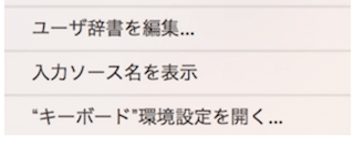 Macの右上のメニューの言語選択を開いてその中の「ユーザー辞書を編集」をクリックしましょう。