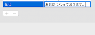 この例だと左側に「おせ」、右側に「お世話になっております」を入力し登録を行います。