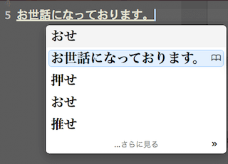 すると文字を入力する際に「おせ」を入力し、変換キーを押すと先程登録した「お世話になっております」が候補にあがります。