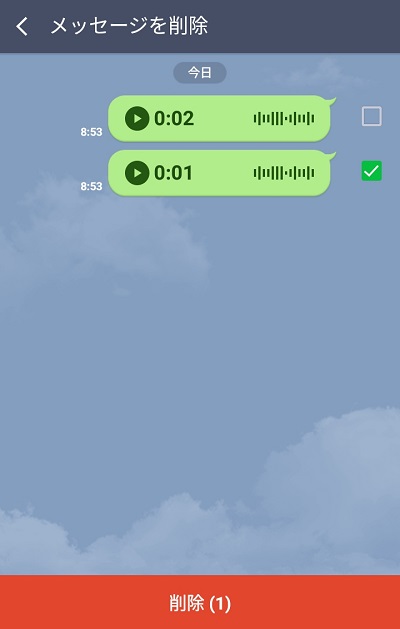 削除するメッセージの選択画面になります。最初にタップしたボイスメッセージ以外も削除したい場合、削除したいボイスメッセージをタップしてチェックボックスをオンにしましょう。