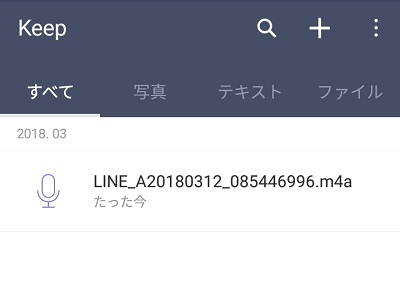 LINE Keep内にm4a形式の音声ファイルとして保存されます。