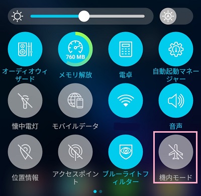 表示されたメニューにある「機内モード」をタップして、ボタンをオンにしましょう。