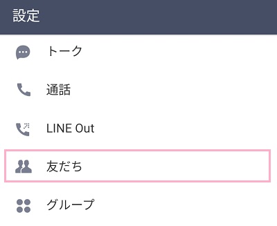 設定メニューから「友だち」をタップします。