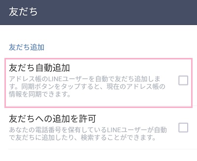 チェックボックスをオンにすると、スマホのアドレス帳に登録されている電話番号を検索して、LINEユーザーを自動で友だちとして追加します。