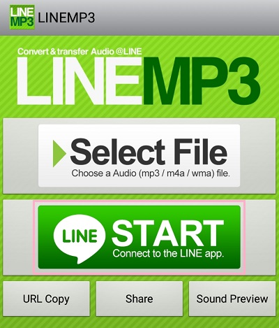 音楽ファイルのアップロードが完了すると、「Upload」ボタンが「LINE START」ボタンへと変わります。タップするとLINEが起動します。