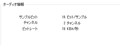 先ほどの説明で使用した音楽ファイルはビットレートが320KBitだったのですが、送信したファイルのビットレートを見てみるとまさかの16KBit…カセットテープ並みかそれ以下の音質になってしまっています。