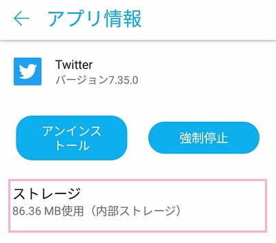 アプリ情報が表示されたら「ストレージ」をタップします。