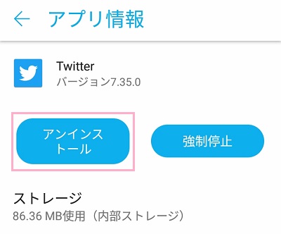 キャッシュを削除してもホームボタンが効かない場合は「アンインストール」をタップしてアプリをアンインストールしてみましょう。