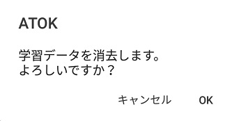 「学習データを消去します。よろしいですか?」と尋ねられるので、「OK」ボタンをタップしましょう。これで、予測変換に登録されていた入力履歴が全て消去されます。