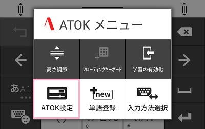 ATOKメニューが表示されるので、「ATOK設定」をタップします。