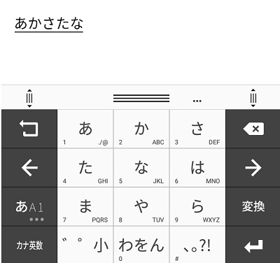 キーボード入力画面のかな入力切り替えボタン(あA1と表示されているボタン)をタップして長押ししましょう。