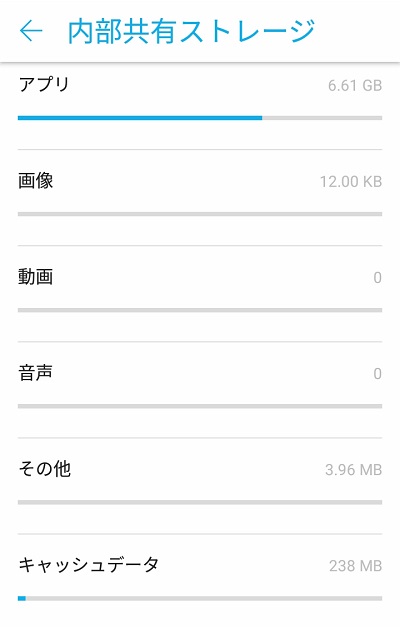 ストレージの使用状況がグラフで表示されます。最下部にある「キャッシュデータ」をタップしましょう。