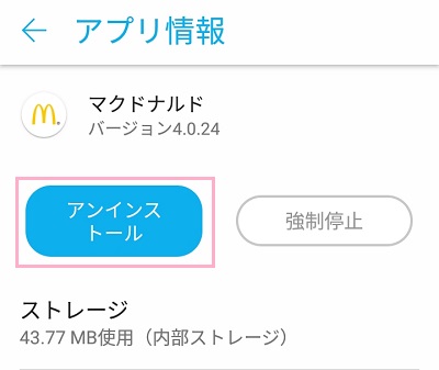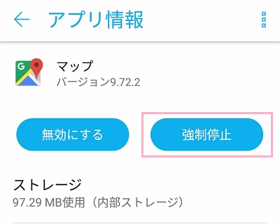 アプリ情報が表示されるので「強制停止」ボタンをタップします。