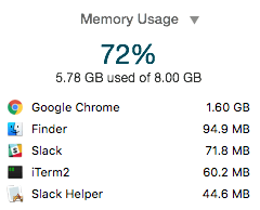 kernel_taskなど見慣れないプロセス名もあるかと思いますが、例えばDropboxなどプロセス名からアプリケーションが特定できそうな場合もあり、どのアプリケーションがどのくらいメモリを食っているかの参考になるかと思います。