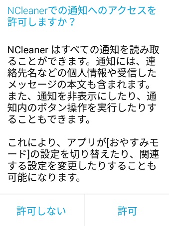 インストールして起動すると、画像のように権限をオンにするよう求められるので設定メニューから権限をオンにしましょう。