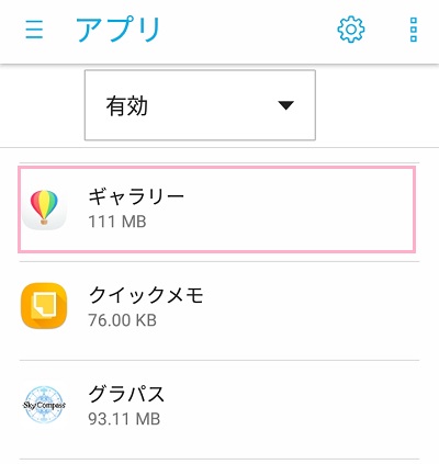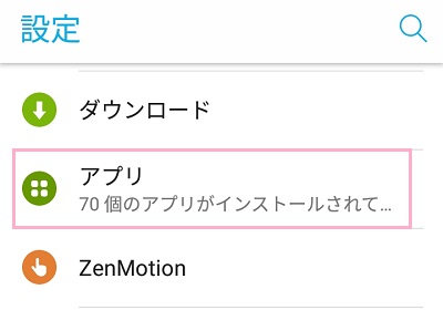 続いて常駐アプリの消し方ですが、まずは設定メニューを開き「アプリ」をタップしましょう。
