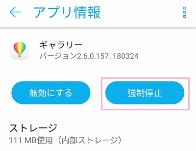 アプリ情報が表示されたら、「強制停止」ボタンをタップしましょう。