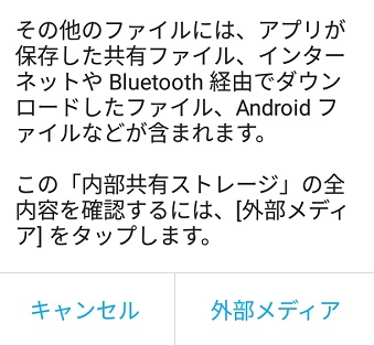 アプリが保存した共有ファイルやインターネット等からダウンロードしたファイル、そしてAndroidのファイルが含まれていると書かれています。