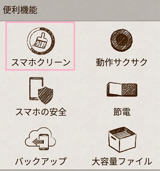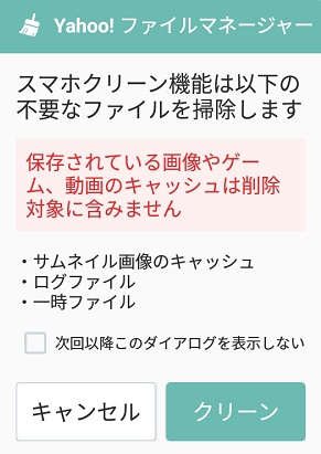 注意書きに書いてある通り、わかりやすい不要ファイルであるサムネイル・ログファイル・一時ファイルを削除してくれます。「クリーン」ボタンをタップすればクリーンアップが行われ、不用ファイルが削除されて空き容量が確保できます。