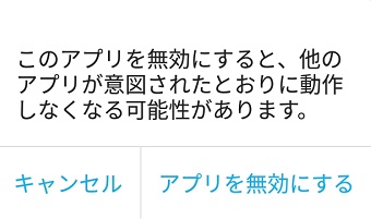 アプリを無効にする場合の注意書きが表示されますが、気にせず「アプリを無効にする」をタップしましょう。更新データが削除されます。