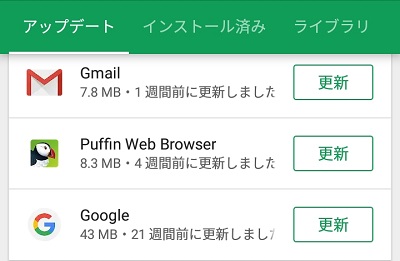 再起動後にGoogleストアを開き、メニューの「マイアプリ&ゲーム」のアップデートタブを表示してみましょう。
