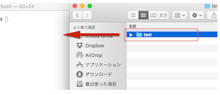 後者の「/Users/ユーザー名/Downloads/test」はドラッグアンドドロップで入力された部分です。