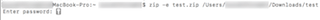 zip -er 圧縮後のファイル名 /Users/ユーザー名/Downloads/test