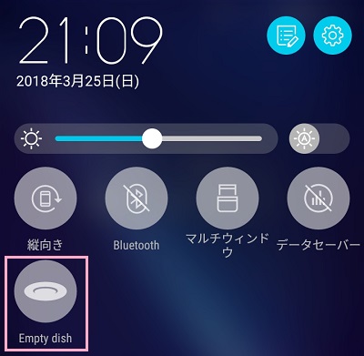 再びクイック設定メニューを見てみると「Enpty dish」という空の皿のアイコンが表示されているのでタップしましょう。