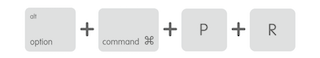 ①電源を入れてすぐに「option」「command」「P」「R」の4つのキーを同時に押します。