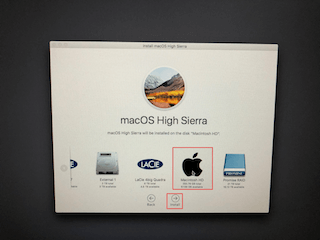 ⑥起動ディスクを選択して「Install」を選択します。