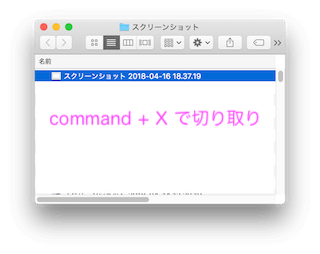 例として、ファイルを選択し、「⌘(command) + X」で切り取ります。