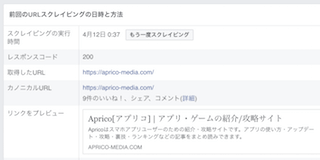 ここではクローラーが取得したレスポンスコード、カノニカルURLなどが表示され、最後にシェアしたときに表示されるプレビューが確認できます。