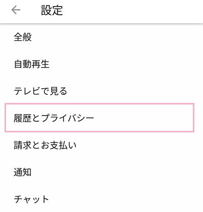 設定項目の「履歴とプライバシー」をタップします。
