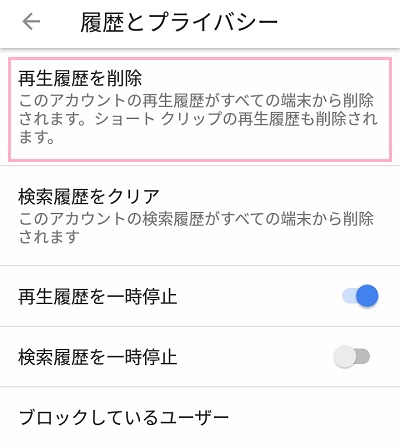 Youtubeの履歴を削除したい