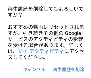 「再生履歴を削除してもよろしいですか?」とウィンドウが表示されるので「再生履歴を削除」をタップすれば再生履歴が消去されます。