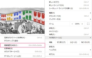 メニューが表示されたら「その他のツール」にマウスカーソルを合わせて、サイドに表示されるメニューの「閲覧履歴を消去」をクリックします。