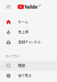 Youtubeの動画の再生履歴はどこから見れるのかというと、左上に表示されているメニューボタンをクリックして表示されるメニューの中の「履歴」らか見ることが可能です。
