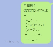 このアスキーアートはテキストで表現できるものならなんでも使うことができるので、LINEで使えるのもポイントです。